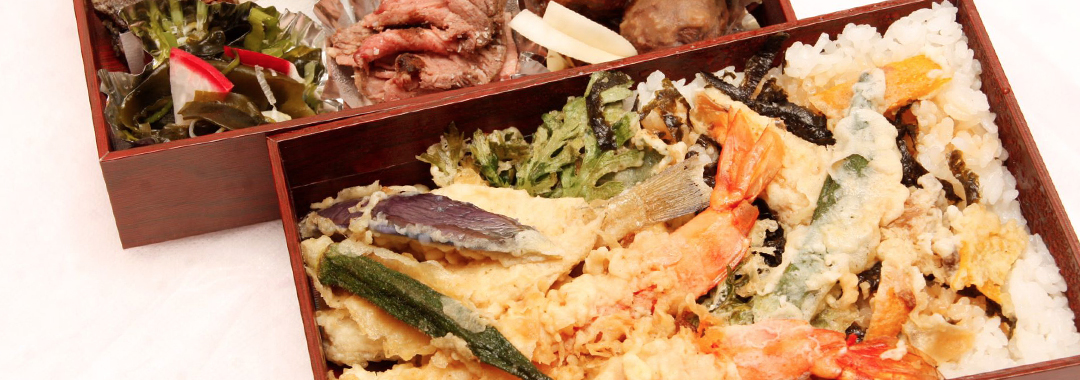お店でご提供している天ぷらメニューを、ご自宅でもお楽しみいただけるよう前日までのご予約限定で、テイクアウトのご注文を承っています。家族での集まりやおもてなし、お土産に、行楽のお供にも、美味しい笑顔広がるお弁当を!海老天重、穴子天重とも税込1,280円。絶品秘伝のタレで、お召し上がり下さい。