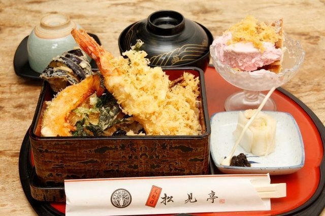 プリプリの海老が3尾!海老好きにはたまらない、大満足の海老天重です。 汁物・香の物・デザート付