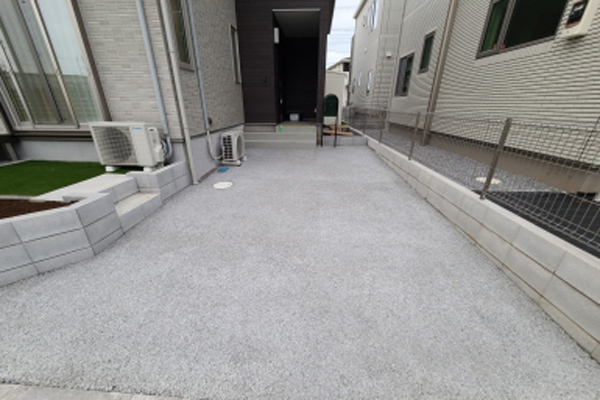 少し前になりますが、新築一戸建ての外構工事(駐車スペースのコンクリート敷き、境界のフェンス等)をお願いしました。 限られている予算の中でも打ち合わせでいろんな案を出していただき、また、芝は自分たちで敷くことにしてその際のレーキ等の道具を貸し出していただき大変助かりました(^^)