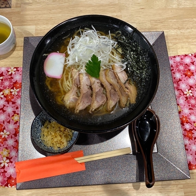 冷たいとり中華(大盛)をお昼にいただきました。 和風ダシの冷たいスープにコシのあるよく締まった麺が癖になる美味さです。 …サービスの玉こんにゃくが、また旨い。 ちょっと蒸し暑い日でしたが、オシャレな店内で涼を取ることができました。
