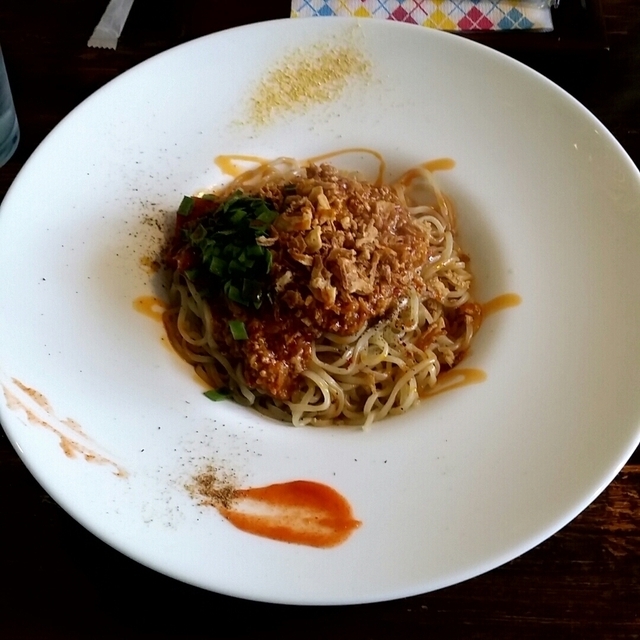 ●汁なし担々麺950円 麺は中太ちぢれ麺のやわらかめ。 ひき肉と香草の香りがよく、 麺とよく混ぜていただきます。 味は品のあり、まろやかで、 他にはない担々麺になっています。
