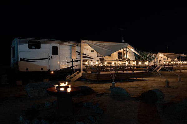 トレーラー側に個別の食事スペース・大型のBBQグリルを設置。各棟にトイレも備わっており安心です♪