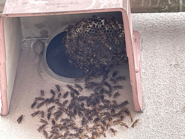 ハチは風雨がしのげ、日陰になる場所を好んで巣を作ります。見つけても近づいたり刺激せず、巣が大きくなる前に早めに対処しましょう。