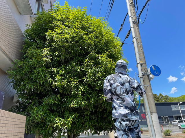 毒のある毛虫に刺されると痛みや痒みがあるだけでなく、皮膚炎やアレルギー症状を起こすことも。当社では防護服を着用し、毛虫に効果のある薬剤を散布して駆除します。高い庭木にも対応しています。
