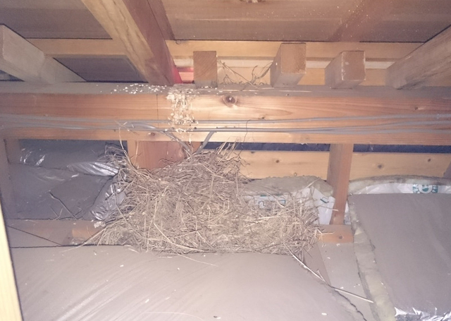 【鳥類の種類・特徴】 日頃、暮らしの中で見かける鳥はムクドリ、ハト、カラス、スズメなど多種に渡りますが、鳥害でよくあるのが軒下など家屋の一部やエアコンの室外機の隙間に巣を作ることや、農作物への食害、そして糞害です。 特にハトのフンには、人に肺炎を引き起こすオウム病クラミジアや、カビの一種であるクリプトコッカスなどの病原菌が含まれやすい傾向があります。しかも保護鳥扱いのため、原則として殺鳥禁止。 被害を防ぐためには、そこにハトが寄りつかないようにするための環境的駆除法が必要になります。 【駆除作業】 巣の撤去、清掃、消毒。飛来防止対策など 【料金】 現地調査、お見積もり、無料で行っています。