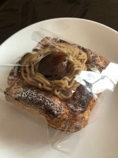 コシニールさんの和栗のパイをいただきました。モンブランのようなマロンクリームの甘さとパイのサクッとした食感が楽しめました。季節限定そうなのでまた食べたいです。