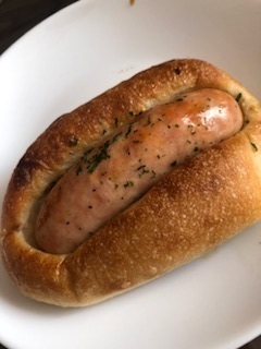 長ーいソーセージのパン!細長く食べやすいので見た目ほど重くありませんでした。マヨネーズソースもマッチしていました。