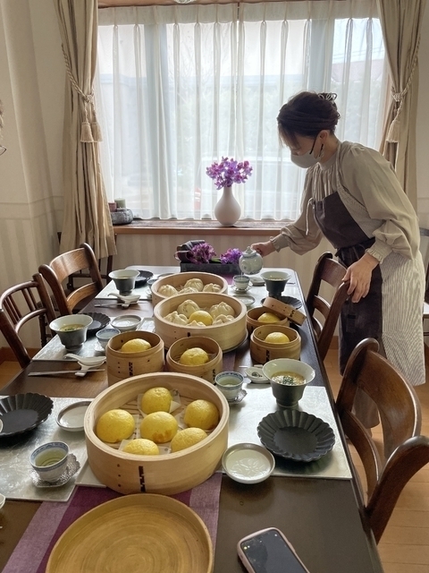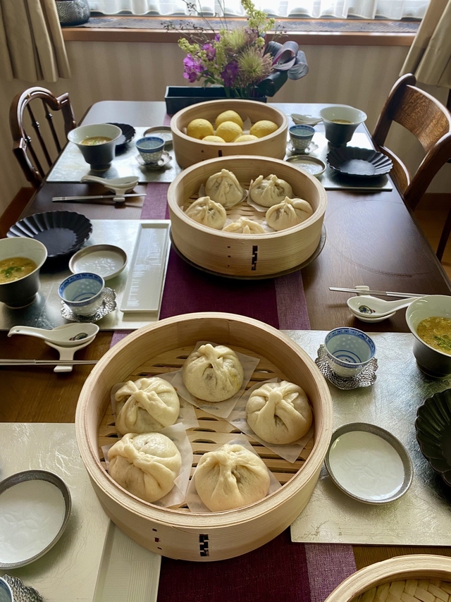 中華まんLessonに参加させていただきました。 肉まんは、もちもち生地 カレーまんは、ふわふわ生地 楽しく捏ねて成形して、蒸しあがったまん丸な我が子(笑)がとても可愛らしく、熱々を美味しくいただきました。 また、毎回違うメンバーにお目にかかれれるので、初めはドキドキでしたが、「好き」が同じ方が集まっているので、お話は尽きません。 美味しいお料理と美しいテーブルコーディネートで今回も大満足でした。 次もメニューが決まらずとも予約を入れたい、オススメのお教室です。