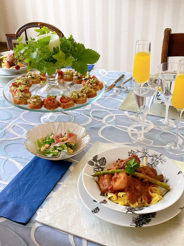 初夏のイタリアンレッスンに参加させていただきました。ブルー系のテーブルコーディネートに夏のお花と涼しげな食器など目でも夏の爽やかな空間を感じ、見た目も味も美味しいおもてなし料理を教えていただき、素敵な空間でいただく食事は大満足です。次のレッスンも楽しみです。