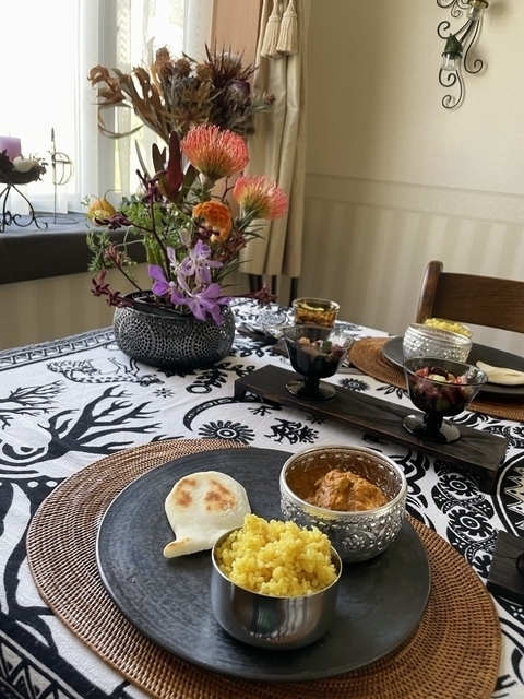 10月。ビューティカレーレッスンに参加させていただきました。 スパイスカレーはハードル高い、と思い込んでいましたが、丁寧に作り方を教えていただいたおかげで、昔ながらのカレーを好む家族にも喜んでもらうことができました。 今回のテーブルコーディネートのテーマは「大人ハロウィン」いつもながら素敵なディスプレイや器の数々が、より一層食事を盛り上げてくれました。 この感動を、沢山の方々と共有したいです。