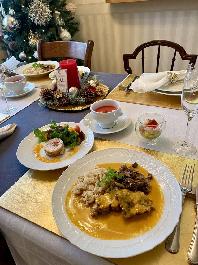 クリスマス料理レッスンに参加しました、 クリスマスを楽しむ機会が減ってきたので、毎年、素敵なコーディネートと、美味しい料理のフェリエ のクリスマスレッスンで、クリスマスを満喫しています 鶏のバロティーヌ、クリスマスじゃなくても、我が家のリピメニューになりそうです 理英子先生、ご参加の皆さまありがとうございました 次回のレッスンも楽しみにしています