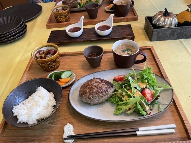 毎回、楽しみにしているフェリエ のレッスン 今回は、2種類のソースのハンバーグや、タルトタタンなど、洋食のレッスンでした 洋食だと、洋食器を合わせる事が多いですが、理英子先生は、笠間焼きなどの器を合わせほっこりと、暖かみのある秋にぴったりのテーブルコーディネートを用意してくださいました タルト・タタンも絶品 自分で作れたら凄いですよね 美味しいお料理を素敵なコーディネートで頂けるので、次回のレッスンも待ち遠しいです、 まだ参加された事のない方にもおすすめですよ