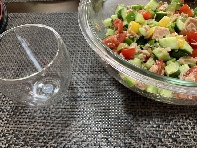 今日は先日のレッスンで教わったピピラーナを作ってみました。暑い日にはお料理する気分にも中々ならないですが、冷蔵庫にピピラーナが入っていたら元気がもらえる一品です。 彩りもとても綺麗で作っている時からハッピーな気分になりますし、お野菜も沢山食べられる一皿です。 テーブルコーディネートの先生でもあるのでレッスンでは盛り付けもとても素敵で色々と参考になります。なので今回は器もレッスンで使用したボダムの食器を購入しました。楽しいレッスンを思い出しながら美味しく食べたいと思います。 写真はまだ盛り付けしてない状態です。最後にゆで卵をのせて完成です。 毎回レッスンが楽しみです。