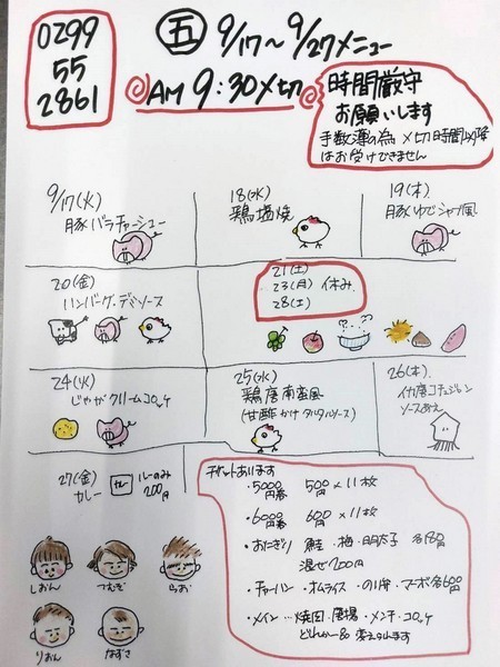 お弁当は当日午前9時40分締め切りです。