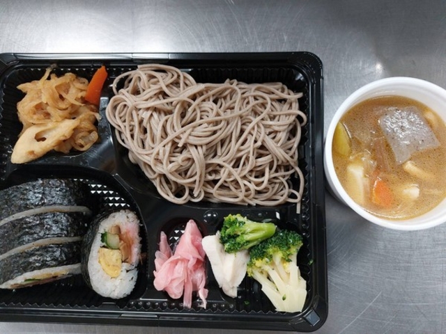 お蕎麦とけんちん汁、巻き寿司のお弁当800円(税込