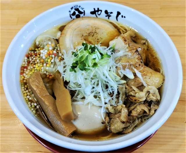 【特製支那そば】 入店後券売機で、おすすめの特製支那そばの食券を購入。醤油と塩の選択ができ、醤油にしました。本当に盛りだくさんのトッピングでボリュームがありました。 鶏チャーシューというより鶏肉が二つ、肉入りワンタンの肉の量が餃子くらいあり、それも2個入っていました。麺はやや細目で、醤油スープもおいしかったです。(1200円) 清潔な店内で、お店の方は全員女性でした。