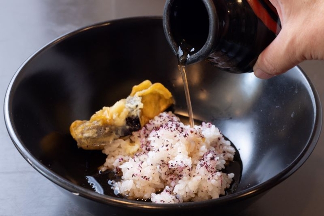 ご飯にかかったゆかり(塩天丼の場合)との美味しいハーモニーで、最後のお米1粒までいただけます!