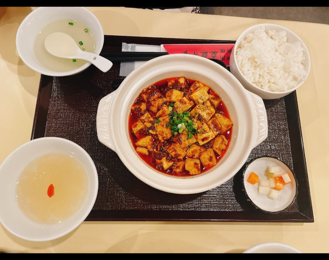 ランチの麻婆豆腐定食を食べました。 椒が効いていて痺れます。 辛くて油もたっぷり、美味しいです。とても本格的な味。 前ディナーに行ったときは1階で食事したのですが、その時よりも店内は広くなってました。 イートインは2階に入っていくスタイル。結構綺麗です。 中国の方が多いので、異国の雰囲気を味わえます。 ご飯おかわりできます。水のおかわり含め、全部QRコード読み取り、メニュー選択で行えます。会計は1階です。