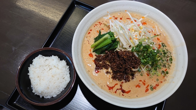 きれいなお店で気持ちよい接客をうけました。 限定の担々麺をいただきました。 濃厚な味噌と香り高いごまのスープと挽き肉の味が合っています。 麺はつるつるです。 よく見るとネギの下にもやしが隠れていて、結構ボリュームがあります。 おいしかったです。 いばナビのクーポン、使えばよかった…