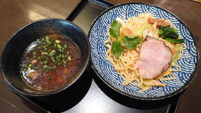 濃厚無双味噌ラーメン味噌乃マルショウ下妻店さんで梅潮つけ麺をいただきました。 潮つけ汁がおいしいです。 梅肉がまぶされたキャベツもおいしい。 太めの麺もつけ汁を引き上げておいしい。食べごたえがある。 スープ割りをお願いするとお椀にスープが出てきます。四角に切られたチャーシューが入っていてお得感があります。