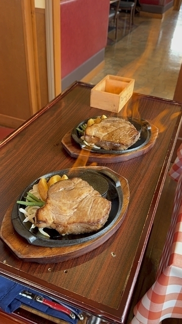 最近始まった燻製メガポークステーキをいただきました!200〜1000グラムが選べ,今回は300グラムに。低温調理でお肉が柔らかく,ボリューム満点。ご飯はおかわり自由です!