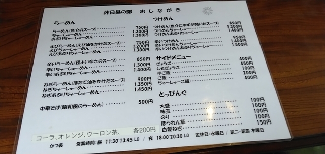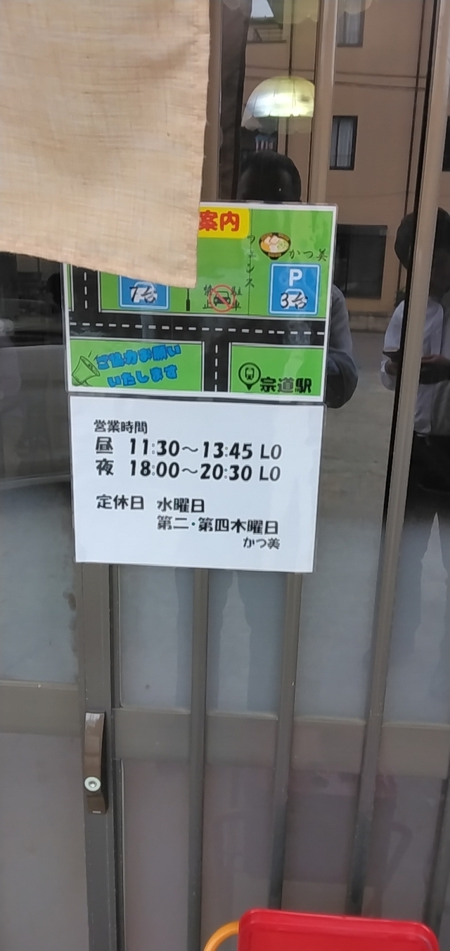 下妻の「めんや暁」が約2年前に閉店し、こちらへ移動・新たにオープンしたお店です。関鉄常総線・宗道駅前にあるお店の表看板には、昔の「かつ美食堂」の名前が残っています(店主の実家が営業していた食堂だったとか)。2月初旬の日曜昼に初めて訪れました。以前の店舗に比べ、こぢんまりとした佇まいですが、7割程の客入りと盛況です。カウンター席に着き「ねぎあぶりちゃーしゅーめん」+追加トッピングのほうれん草を注文。カウンター上にはニンニクパウダーやニンニク酢等の調味料瓶が目に付きます。暫くしてラーメン到来。モチッとした中太麺が浸るのは、ホタテ油が浮く濃厚な感じの豚骨醤油スープです。麺上には、約1cm厚と分厚く網焼き目の入った炙り豚叉焼5枚、刻み白ネギ、穂先メンマ、それに追加で増量したほうれん草。ホタテ油の加わったスープは実に美味しいですが、やはり分厚く香ばしい豚叉焼がジューシーでたいへん食べ応えがあります。スープは完飲できなかったものの、麺等は完食して満腹となりました。