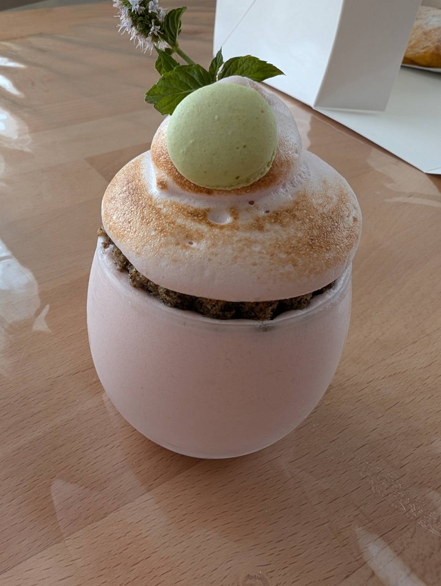 口コミを見て評価が良かったので初訪問しました。ケーキの数は売れてしまったのか多くはなく、残り1つもいくつかありました。3個購入し家で早速食べましたが、もう全部美味しい!1番好みはまんまるのクリームブリュレのような中にフルーツがゴロゴロ入ってるもの。カスタードの味と土台?のパイの味が最高でした。 中身が秘密?のクレープは800円とお高めでしたが、場所によって味が違うという初めての感覚。そしてどこ食べても美味しい。 どの品もギフトにも良いなと思うオシャレかつ美味しいケーキでした。