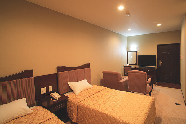 ゲストルームすべてツインルーム。全室地デジ対応TV、バストイレ完備。光回線インターネットもご利用可能