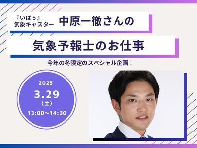 気象予報の舞台裏や1日の仕事の流れ、茨城県の気象の特徴などをお話しいただきます。