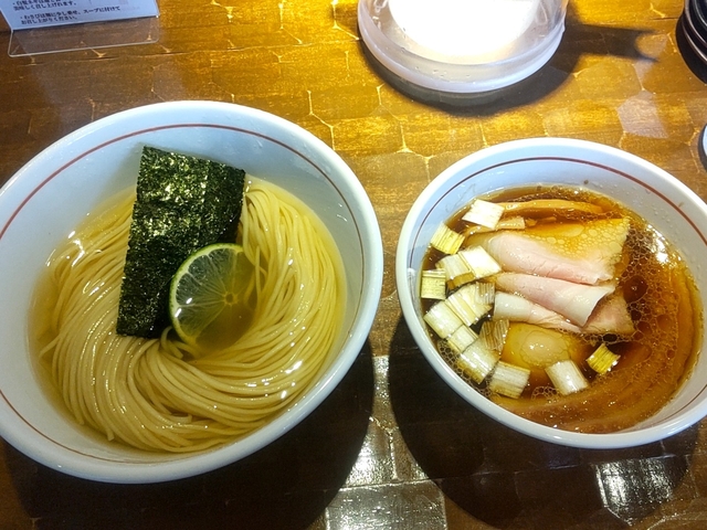●特級昆布水つけ蕎麦醤油 麺は中太麺の200g 最初そのまま食べるが、麺はかため。 スープは濃厚醤油ベースに チャーシュー、味玉、メンマなど。 麺をスープに通すと、ちょうど良い かたさになり、スープとともに 美味しくいただけます。 割スープはあるみたいだが 残った昆布水を割スープ代わりにして 全部飲み干しました。