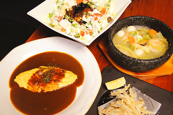 ◆和’Sサラダ 590円 ◆もちチーズ焼き 590円 ◆白エビの唐揚 550円 ◆ねぎま串(1本) 180円 ◆牛スジのピリ辛煮込み 690円 ◆石焼韓国風チャーハン 690円 ◆デザート 200円~