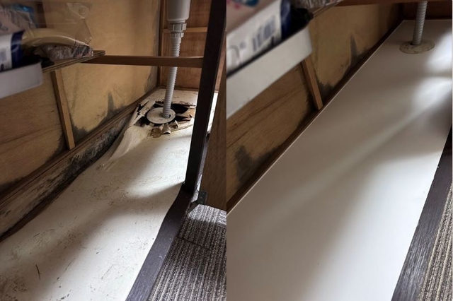 シンク下からの水漏れにより底板がボロボロになってしまっていました。