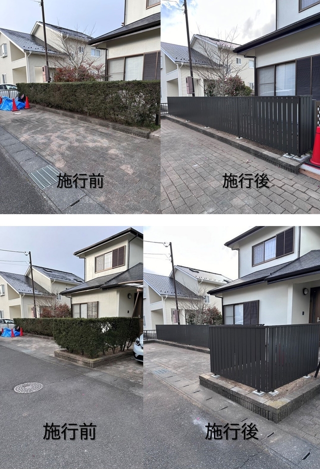 生垣のお手入れにお困りとのご相談でした。生垣を撤去しフェンスを施工しました。