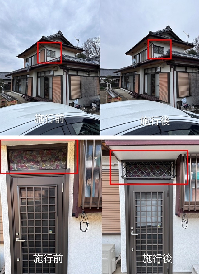 ルーバーサッシ部分の防犯面でご心配されてのご相談でした。