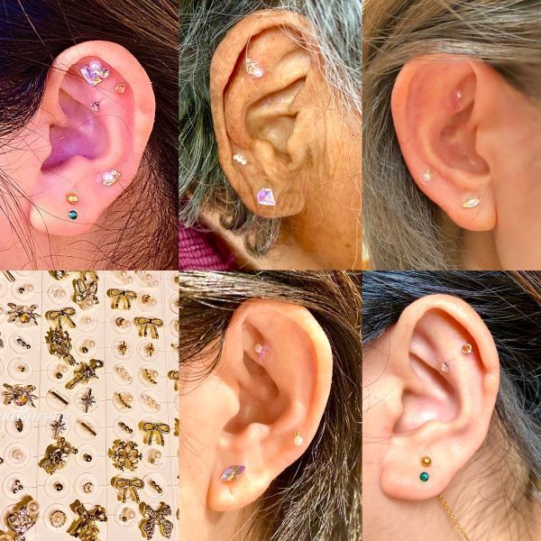 耳ツボジュエリー施術例 ストレスや肩こり、膝関節、ダイエットや美肌のツボは人気が高いです
