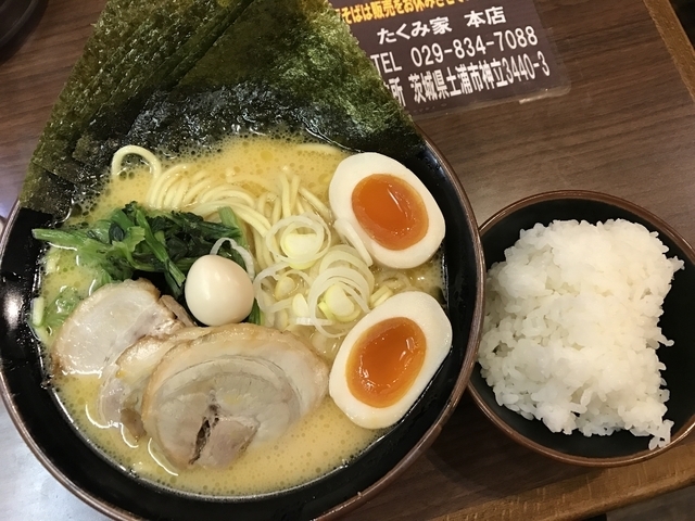 久しぶりの家系ラーメン たくみラーメン醤油をいただきました。 いわゆるトッピング全部乗せです。 濃いめの味付けにパツパツ麺美味しかったです。