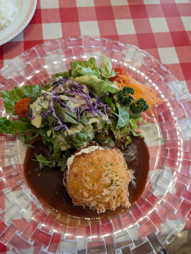 ランチにお邪魔しました。 平日でしたが、お盆だったので残念ながらランチはなし。チーズハンバーグを注文し、真っ黄色なのでチーズが濃いかと思いましたが、見た目よりずっとさっぱり食べることができました。 デザートもおいしそうなのですが、お腹いっぱいで珈琲を飲んで終了。 運転が苦手なので、お店の横にある専用駐車場が大変有り難いです。お店を利用すればメダルをもらえて、それで駐車場を出ることができます。 次はドリアを食べたいと思います。ご馳走様でした。