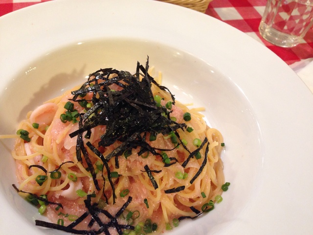 つくばで夜ゴハンを食べよう!とお店をさがしていたところ、いばナビで人気no.1だったので行ってみました♪ レトロ感のある可愛らしい店内。 写真はいかたらこパスタですが、オススメは石焼きナポリタン!フォークが止まらない美味しさでした(^q^)