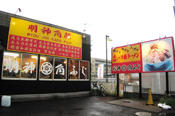 「バカ豚」の看板が目印。「バカ豚」とは当店オリジナルのチャーシューのこと。