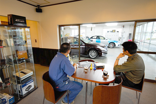 ピット直結のウエイティングスペースで、愛車への施工を見ながらお待ちいただけます。