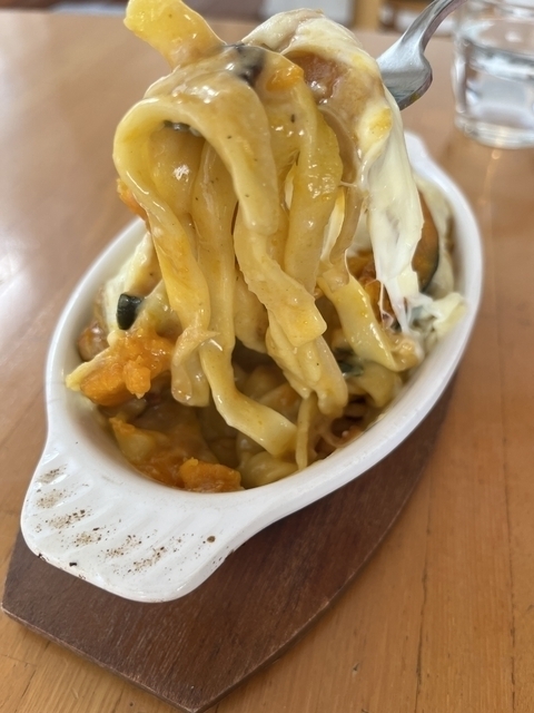 手打ちパスタランチをいただきました!ソースだけでなく麺自体にかぼちゃが練り込まれていてかぼちゃ好きにはたまりません!