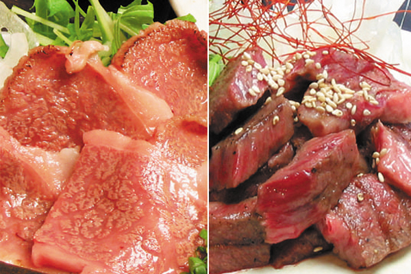 左)香ばしくてジューシー☆牛の炙り刺し1380円/右)人気の定番品!カルビ焼~ワサビ醤油~1280円