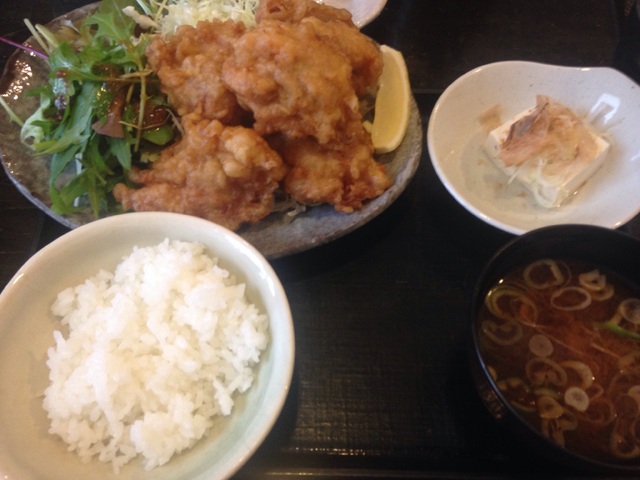 ランチではいつも若鶏の唐揚げ定食!ボリューム満点で、唐揚げ一個一個大きい。外はサクッと、中は柔らかくてジューシー。まだ夜は行ったことないですが、期待大です!