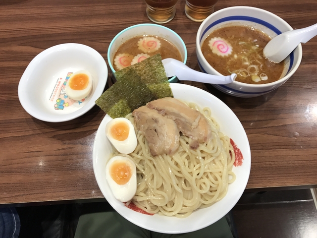 東池袋大勝軒の看板を見て、懐かしくなって思わず入ってしまいました(*^^)v 夫はチャーシュー、私は野菜つけ麺のともにアツモリを頼みました。夫のは普通だったのに私のは、どんぶり一杯の野菜に驚きました(^O^)/勿論夫に手伝ってもらって食べました(^^)vアツアツの太麺、付け汁のダシ!!期待を裏切ることなく、とても美味しかったです!!餃子も肉汁たっぷりで♡♡♡ひろびろテーブル席でゆっくり出来てとても満足)^o^です!!