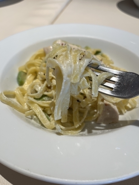 夏にぴったりなレモンクリームパスタをいただきました!前菜のシーザーサラダやデザート,もちろんパスタも絶品!
