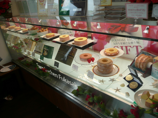 贈答用に「白いやどかりバーム」と「ファームクーヘン」を買いました。 試食もさせてもらいましたが、原材料にこだわって作ってあるので、やはりおいしいです。 「メロンバーム プレミアム」も買いたかったのですが、残念ながら人気商品で予約してもすぐには手に入らないようです。 店頭に飾ってあった1本バームクーヘンがとても気になりました。 どんな人が食べるのかしら!?
