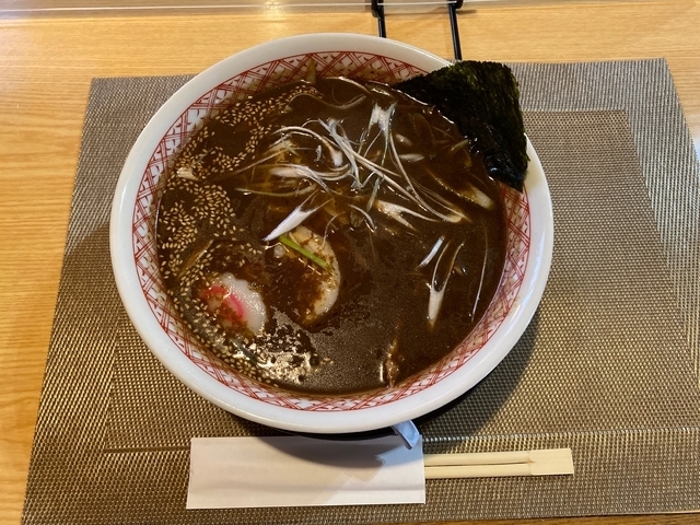 「あちちらーめん(醤油味、税別850円)」をいただきました。 最後まで熱々で食べられる個性的な濃厚魚介系スープはクセになる美味さです。