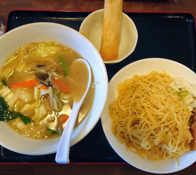 近くで開催されている天童フェアに行くついでに、昼に連れと訪れました。土曜日でも相変わらずの盛況。連れは中華丼、私は本日のランチ(あんかけもやしラーメン+ミニマーボ丼)。それにこの店の名物ツェッペリンカレーコロッケ(袋入り)。先にスナック袋に入ったコロッケが到来しました。以前、高安ラーメン(そう言えば前には壁に貼ってあった品書紙が見当たらない)を食べた際、ラーメンにトッピングされていた、飛行船型のコロッケです。やはり揚げたて熱々で、具にはシャキシャキ食感の刻みレンコンが加わっており美味。あんかけもやしラーメンはあっさり醤油ベースの昔懐かしい味わい。具はたっぷりもやしにニンジン、豚バラ肉、木耳、シナチク等をとろり餡で閉じています。ミニマーボ丼はさして辛くない甘口で、挽肉が多めな感じです。中華丼は中華スープ付、野菜たっぷりとのことでやはり美味かったとのこと。昔懐かしいところに来て価格的にも良心的なのは良いです。