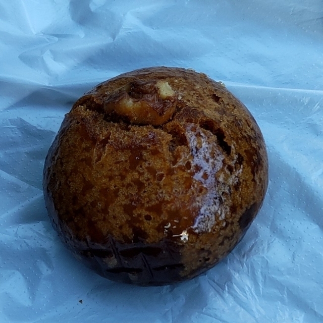 笠間に遊びに行ったカミチャンが買って来てくれました。 お店の様子は、休日のせいもあり混んでいたとのこと。胡桃饅頭をいただきましたが、他のお客さんはかりんとう饅頭を購入されてる方のが多かったそうです。 胡桃饅頭はその名のとおり、頭に胡桃が載っています。餡はこし餡で割りとしっかりした甘さがありますが、皮が黒糖の風味がありつつも甘さ控え目でさっぱりしているので、一緒に食べるとちょうど良いバランスでおいしいです! 途中で通過する胡桃の部分もどのような調理法か分かりませんが胡桃独特なえぐみも無くうまいアクセントになっていて良い感じです。 お土産だったので、蒸かしたても食べてみたいです。