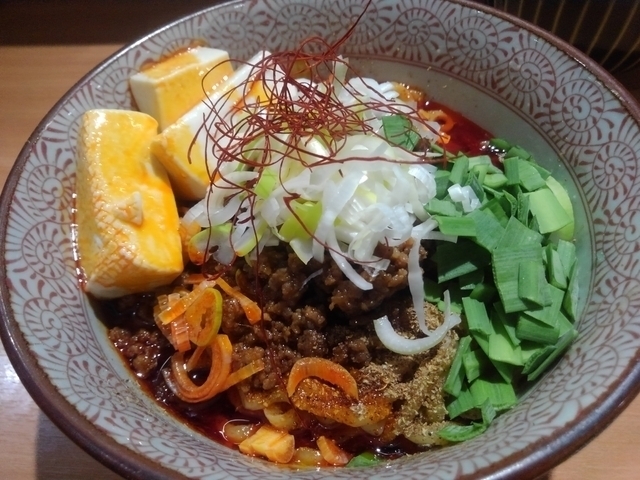 麻婆まぜそばと半ライスを注文。 平日夜、カウンターに7~8割うまっていた。 テーブル席もうまっていた。 久しぶりだったけど、初見だったメニューを。 唐辛子的な辛さと山椒の辛さもどちらもありなかなか美味しい一杯でした。 麺の後に、半ライスを丼に突っ込み残りのタレと混ぜて完食。 思い付きで半ライスを注文したけど、半ライスは必須かと。 なんだったらサービスでつけてくれても…。